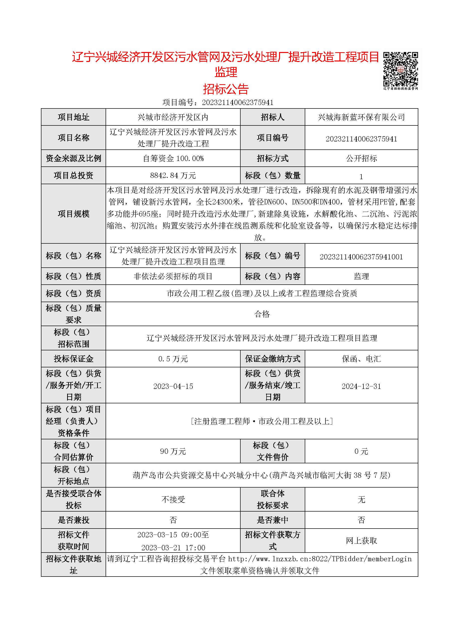 辽宁兴城经济开发区污水管网及污水处理厂提升改造工程项目监理