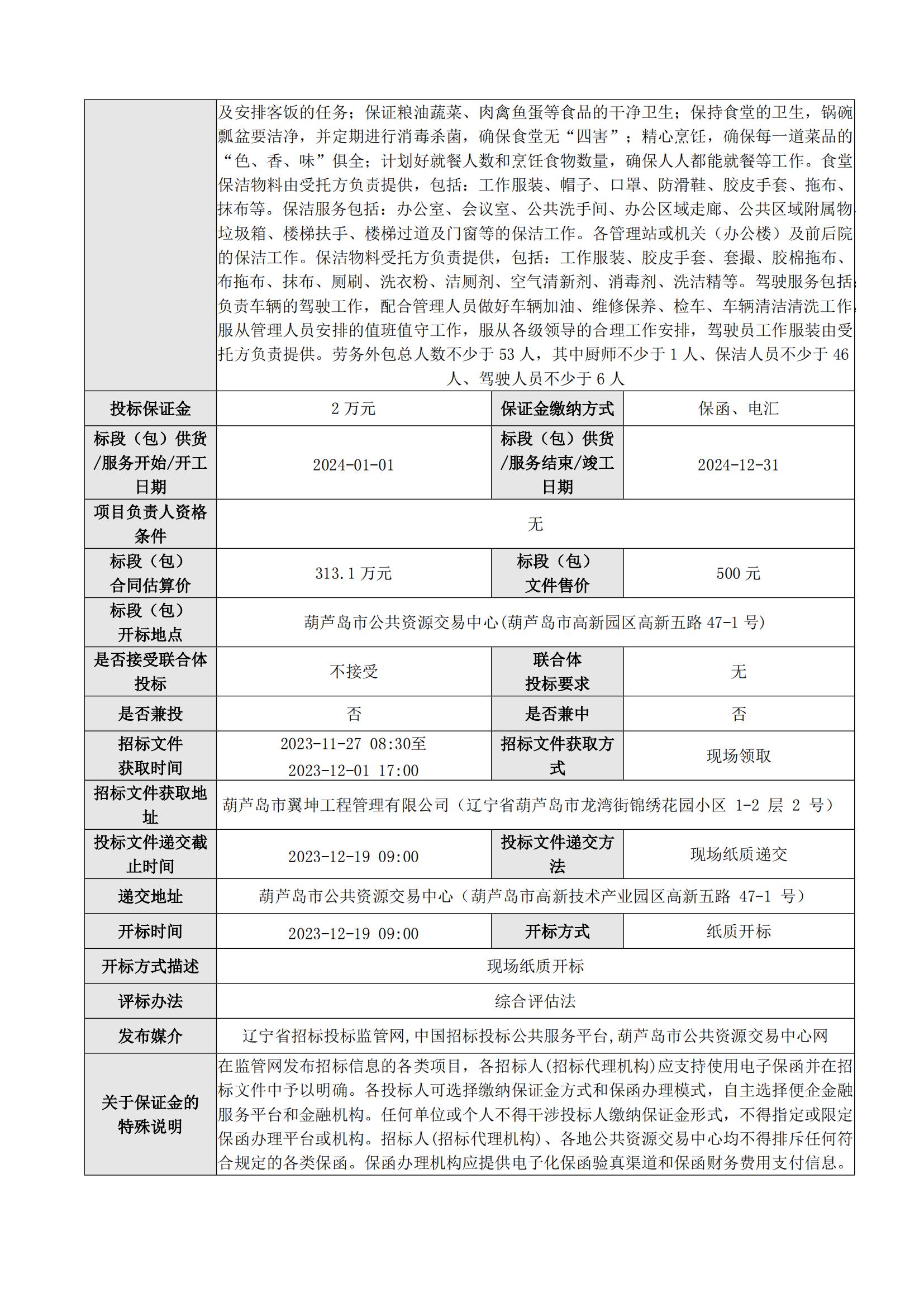 辽宁省高速公路运营管理有限责任公司葫芦岛分公司2024年度食堂、保洁等劳务外包服务项目